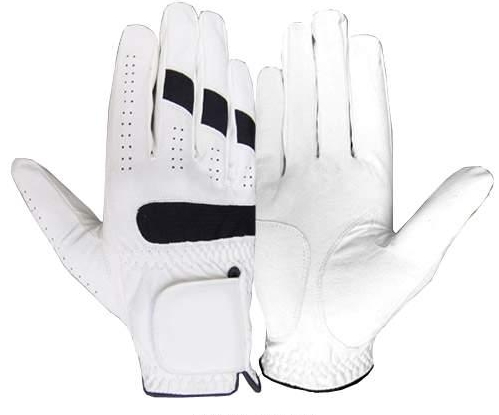 Leather Golf Gloves of High Quality White with Black Knuckle and Finger Lined.