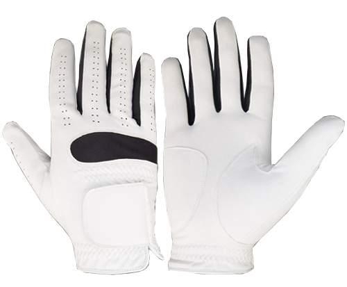Leather Golf Gloves of High Quality White with Black Knuckle and Three Fingers