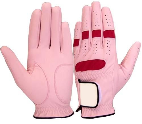 Leather Golf Gloves of High Quality Light Pink Color with White Closure.