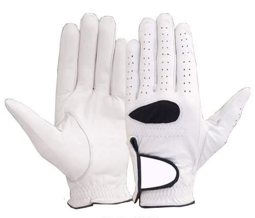 Leather Golf Gloves of High Quality White with Black Knuckle and Three Fingers