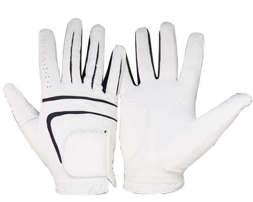 Leather Golf Gloves of High Quality White with Black Knuckle and Finger Lined.