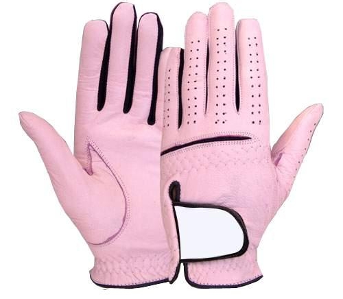 Leather Golf Gloves of High Quality Light Pink Color with White Closure.